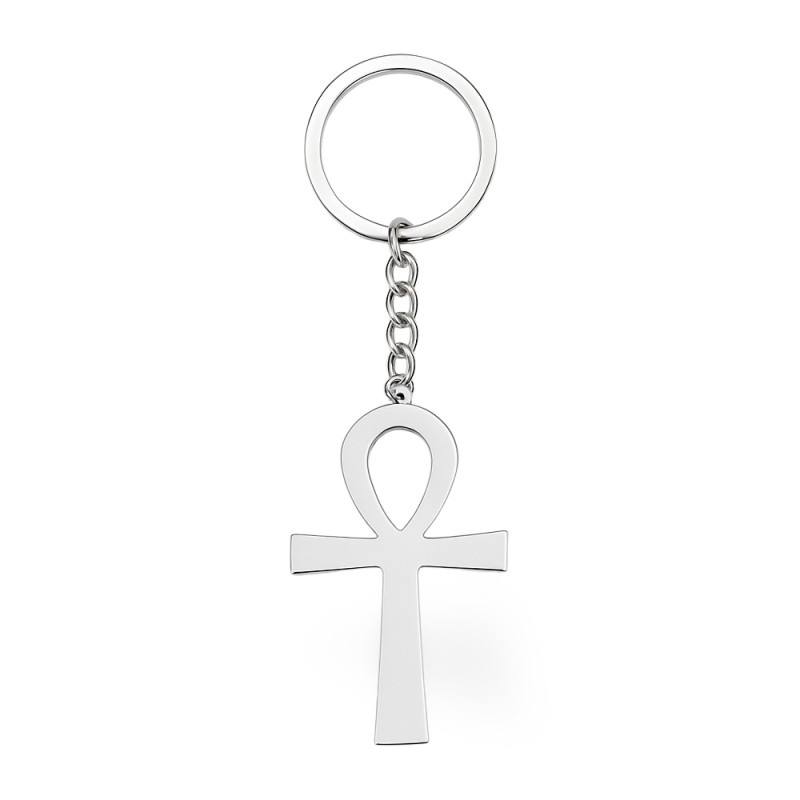 Llavero simbólico en acero inoxidable con diseño Cruz de Ankh, inspirado en la simbología egipcia y adecuado como complemento representativo o personal.