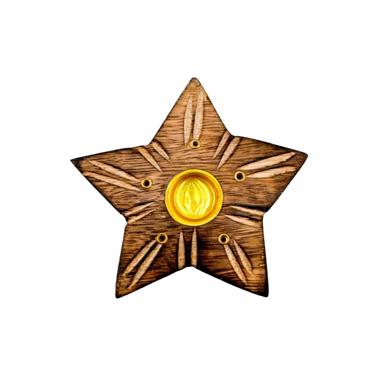 Quemador de incienso de madera en forma de estrella, tamaño pequeño, apto para conos y varillas de incienso. Ideal para crear un ambiente espiritual, decorar tu altar y acompañar rituales de limpieza energética.
