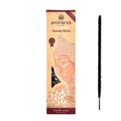 CONTENIDO: 8 Sahumerios extra gruesos con una duración aproximada de 70 minutos fabricados con carbón 100% vegetal AROMA: Sándalo hindú. MODO DE EMPLEO: Coloca la varilla de incienso en el pequeño hueco que el porta-inciensos tiene para tal fin. Enciéndela por su extremo superior con un mechero o cerilla y deja que se consuma disfrutando de su aroma natural.